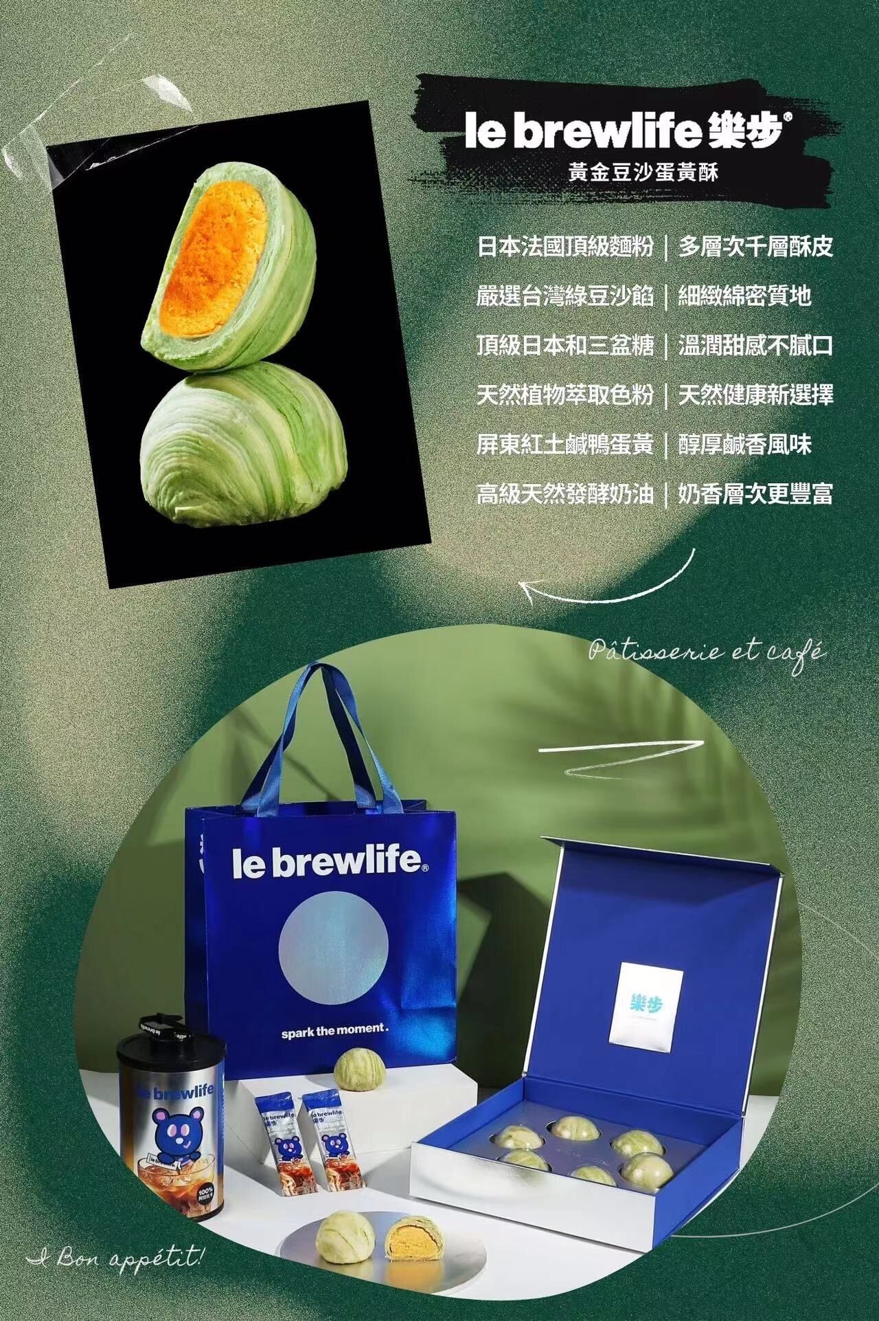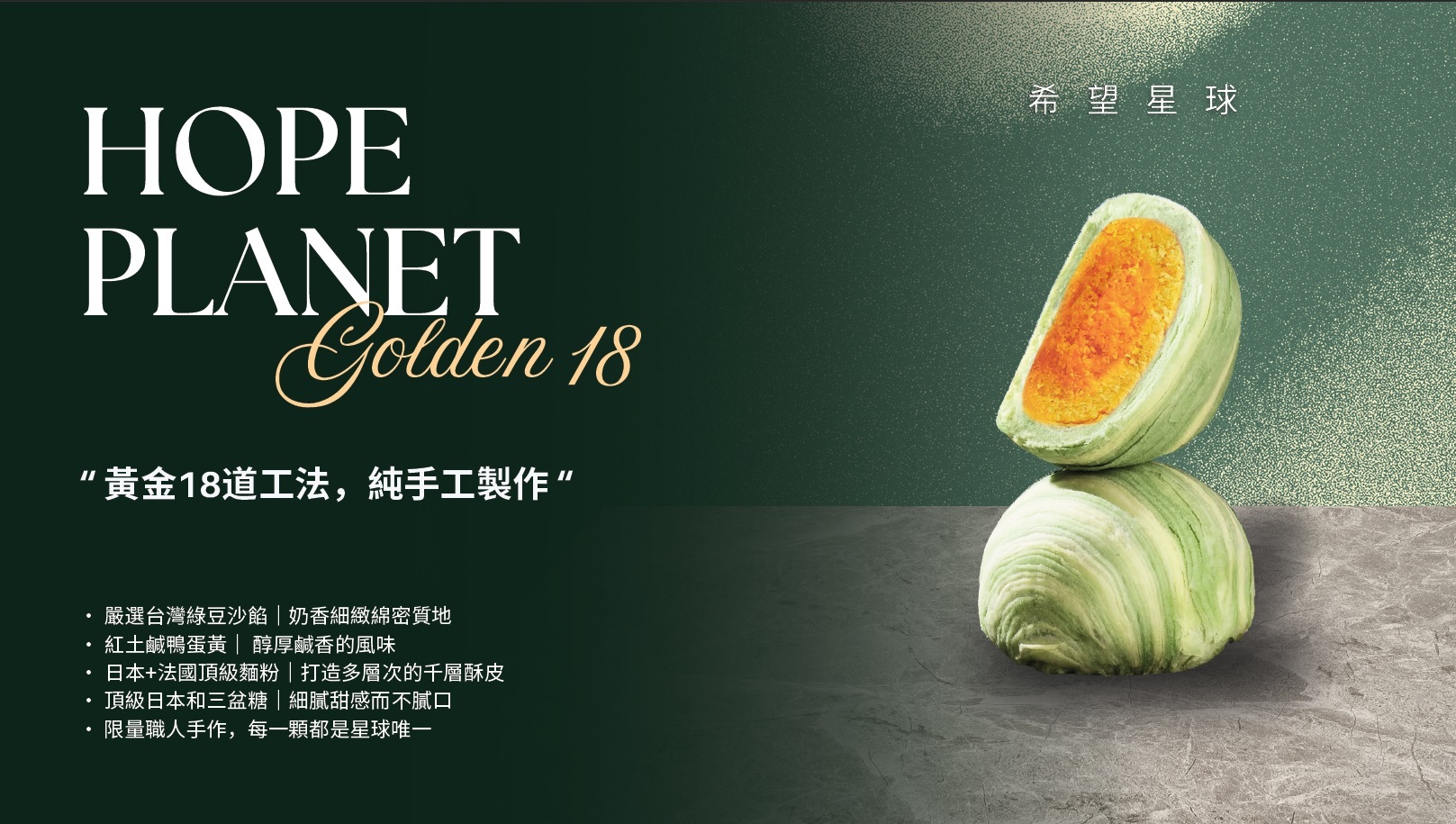 嚴選台灣綠豆細緻沙質,融合紅土鹹鴨蛋黃的醇厚鹹香,交織成經典雙重滋味;日本與法國頂級麵粉結合天然植物萃取色粉,與法國發酵奶油的濃醇奶香相遇,入口綿密酥脆、香甜而不膩。